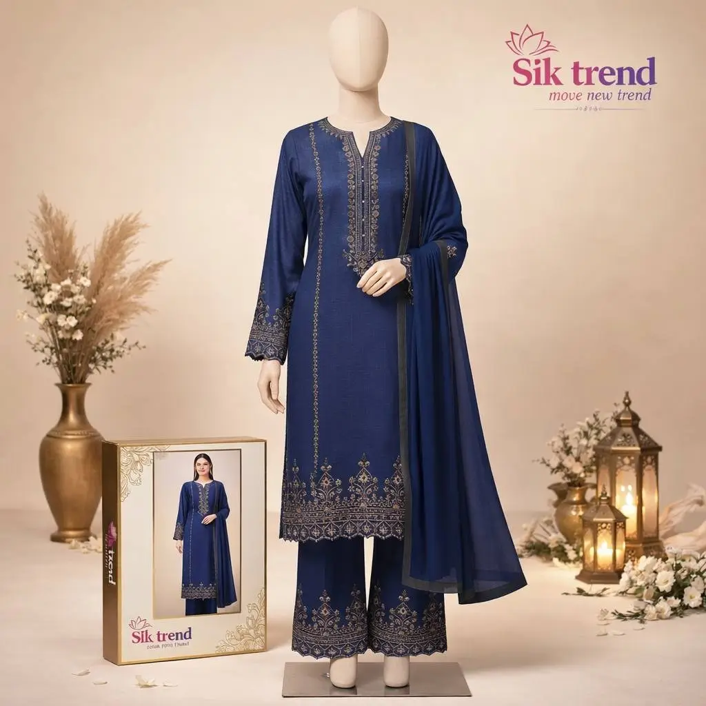 Elevate your wardrobe with the timeless elegance of Olive Noor, a beautifully crafted 3 piece embroidered suit designed for women who appreciate grace and sophistication. The rich olive green shade brings a refined and earthy charm, making it a perfect choice for both day and evening wear.